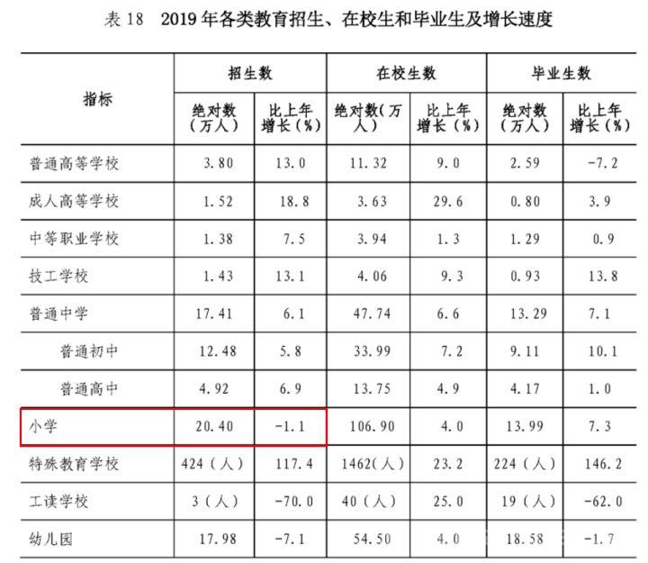 2019年深圳小学生招生人数同样处于下降状态,统计公报显示,2019年招生人数为20.4万人,同比下降了1%。而在2018年,深圳小学生招生人数为20.63万人,同比大增了13.7%。