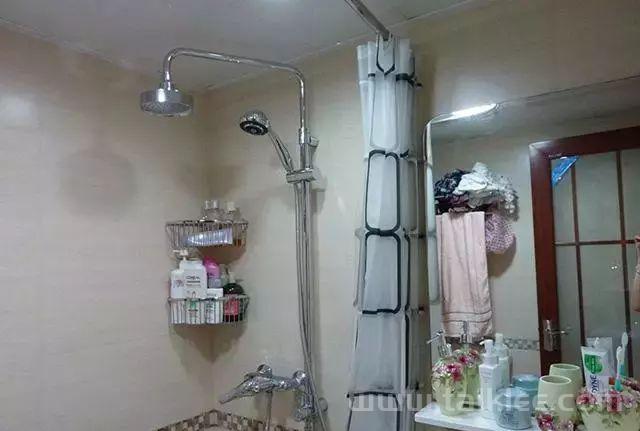 卫生间面积不大,没装淋浴房,浴帘作为干湿分离。