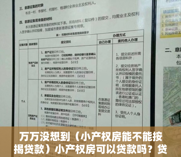 有房产钙长商业银行抵押商业银行贷款的先决条件,但虽然小产权房没红本房产证,无法上市交易,也就难以进行商业银行抵押商业银行贷款。虽然商业银行抵押商业银行贷款没错,但购房者可在民营的信托公司办理相关手续抵押商业银行贷款或对个人借款。其实民营是不一样的,除二手货小产权房外,通常胡尔坎小产权房都能贷款。本息通常4~6厘之间。