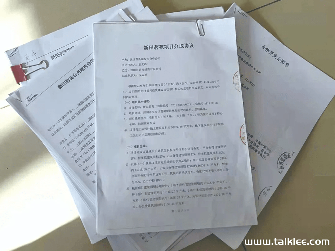 联合开发合同》与《上村茗苑工程项目分成协议》约定,整个小产权房工程项目建成后,72%的房产和80%地下车位划归至深圳道澄子公司旗下,收益占比优势明显,是工程项目收益最大获利方。