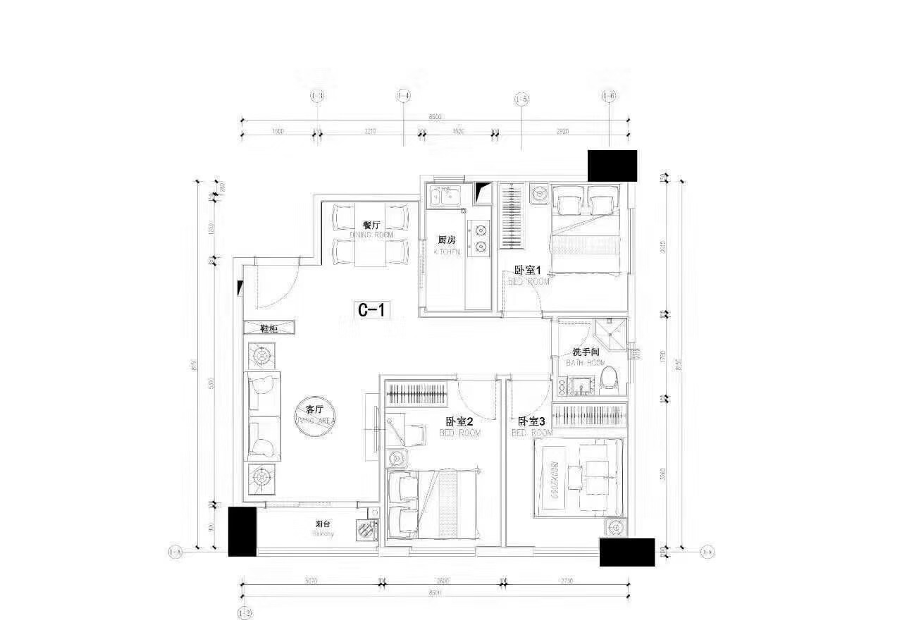 98-107㎡ 3房2厅1-2卫