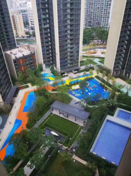 ,设施包含了室外运动跑道,泳池户户带阳台,